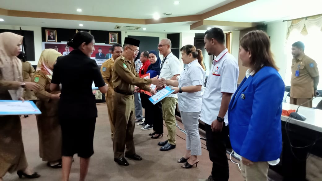 Pemberian Bantuan keuangan kepada partai politik peraih Kursi DPRD kabupaten Halmahera Utara oleh Bupati Halmahera Utara didampingi oleh Kaban Kesbangpol Halut.