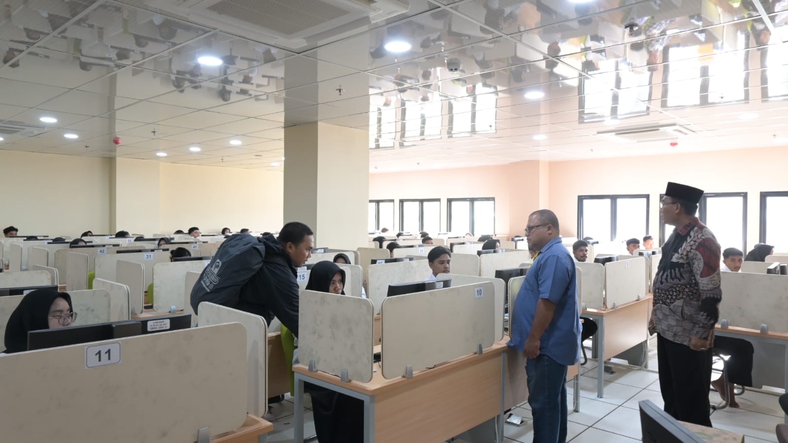 Wakil Rektor Bidang Akademik, Dr. Hasan Hamid, M.Si, tinjau langsung jalannya seleksi yang berlangsung di Gedung Kuliah Terpadu Surat Berharga Syariah Negara (SBSN).