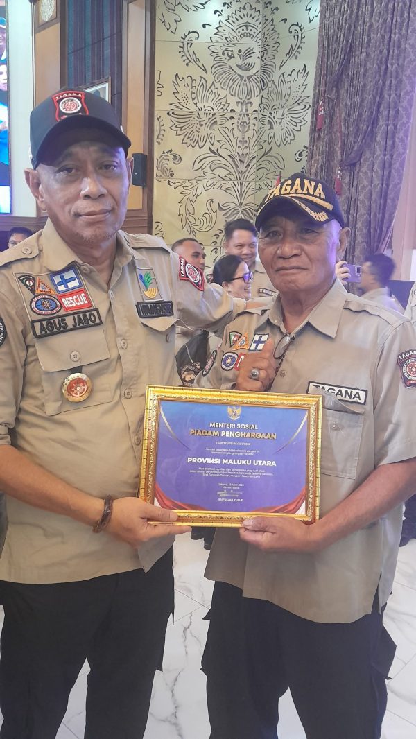 Pada momentum itu, perwakilan Tagana Maluku Utara menerima piagam penghargaan dari Kementerian Sosial sebagai apresiasi atas dedikasi dan kontribusi dalam penanggulangan bencana serta kesiapsiagaan sosial di daerah.