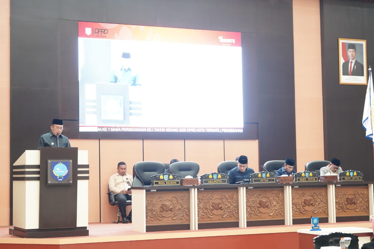 Rapat paripurna tersebut dipimpin oleh Ketua DPRD Ternate, dihadiri Wakil Ketua I, Wakil Ketua II, Sekda Kota Ternate, Pimpinan OPD, Lurah, Camat dan Forkopimda, Rabu (26/11/2025)