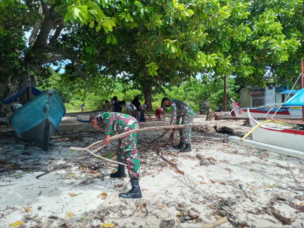 TOBELO-, HR—-Sebagai wujud kepedulian atas kelestarian lingkungan dan pentingnya kehidupan yang bersih, sehat dan indah. Babinsa Koramil 1508-03/Kao Serda Ahmad Ridwan bersama masyarakat dan mahasiswa KKN Unhena laksanakan aksi bersih pantai di Desa Bobale Kecamatan Kao Utara Kabupaten Halmahera Utara, Rabu (23/02/2022).