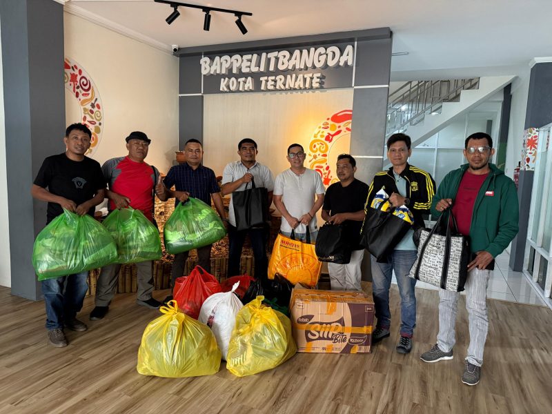 TERNATE, HR – Badan Perencanaan Pembangunan Daerah (Bappelitbangda) Kota Ternate menyumbangkan sejumlah pakaian bekas, popok, dan bahan prioritas lainnya bagi korban banjir di Ibu, Kabupaten Halmahera Barat.