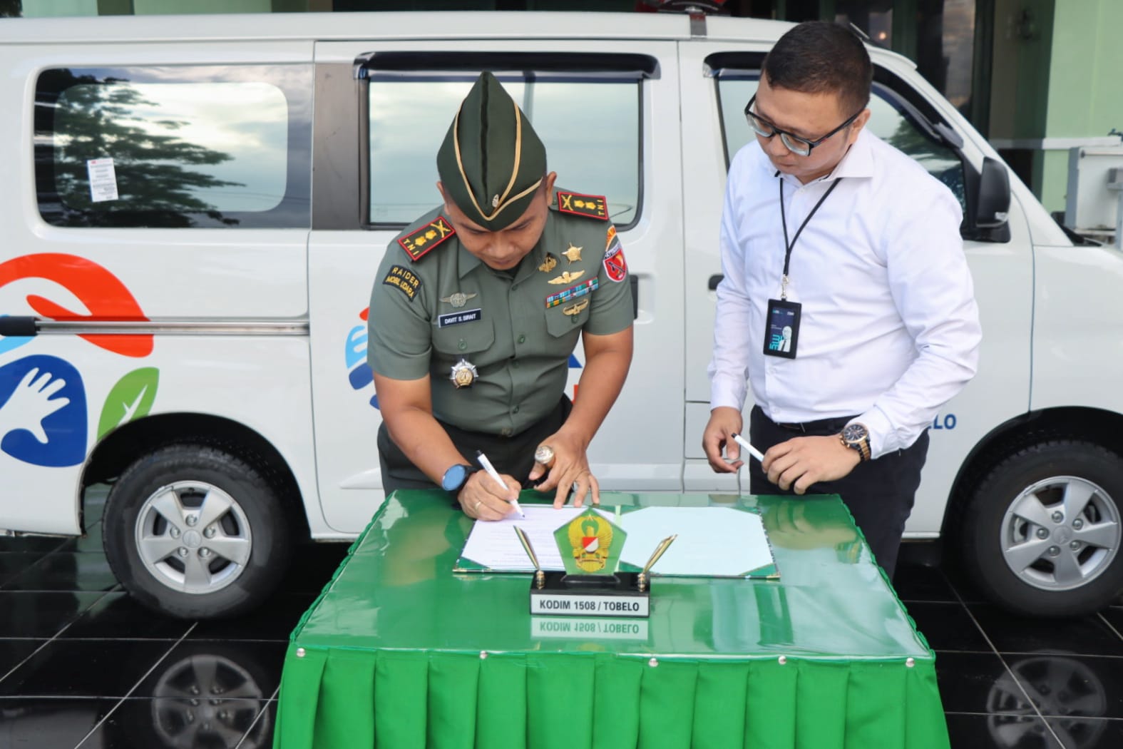 Penyerahan ini ditandai dengan penandatangan Berita Acara Serah Terima (BAST) Pimpinan Cabang BRI Tobelo Halmahera Utara, diwakili Kepala manejer Bank BRI Cabang Tobelo, Orwan Kruntuwaru kepada Komandan Kodim 1508/Tobelo Letkol Inf David Sutrisno Sirait di dampingi Kasdim 1508/Tobelo Mayor Inf Rusmin Nuryadin.