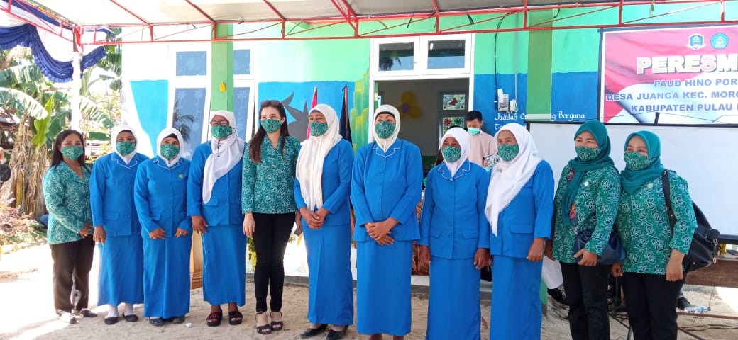 PULAU MOROTAI,HR-—Bunda Pendidikan Anak Usia Dini (PAUD) Pulau Morotai, Sherly Tjoanda, resmikan gedung PAUD Hinoporimoi Desa Juanga Kecamatan Morotai Selatan Kabupaten Pulau Morotai, Senin (05/04/2021).