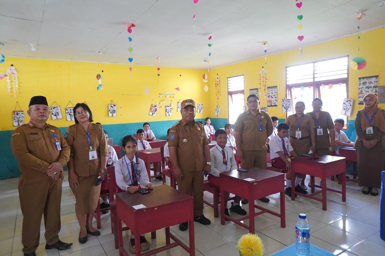 TOBELO, HR — Bupati Halmahera Utara (Halut) Piet Hein Babua, meninjau sekolah di Halmahera Utara yang melaksanakan Ujian sekolah, Senin (05/5/2025). Sebanyak 2.968 siswa SMP dan 3.536 siswa SD yang mengikuti ujian.