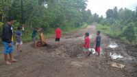Modal Gerobak dan Sekop, Anak-anak di Morotai Gotong Royong Perbaiki Jalan Rusak
