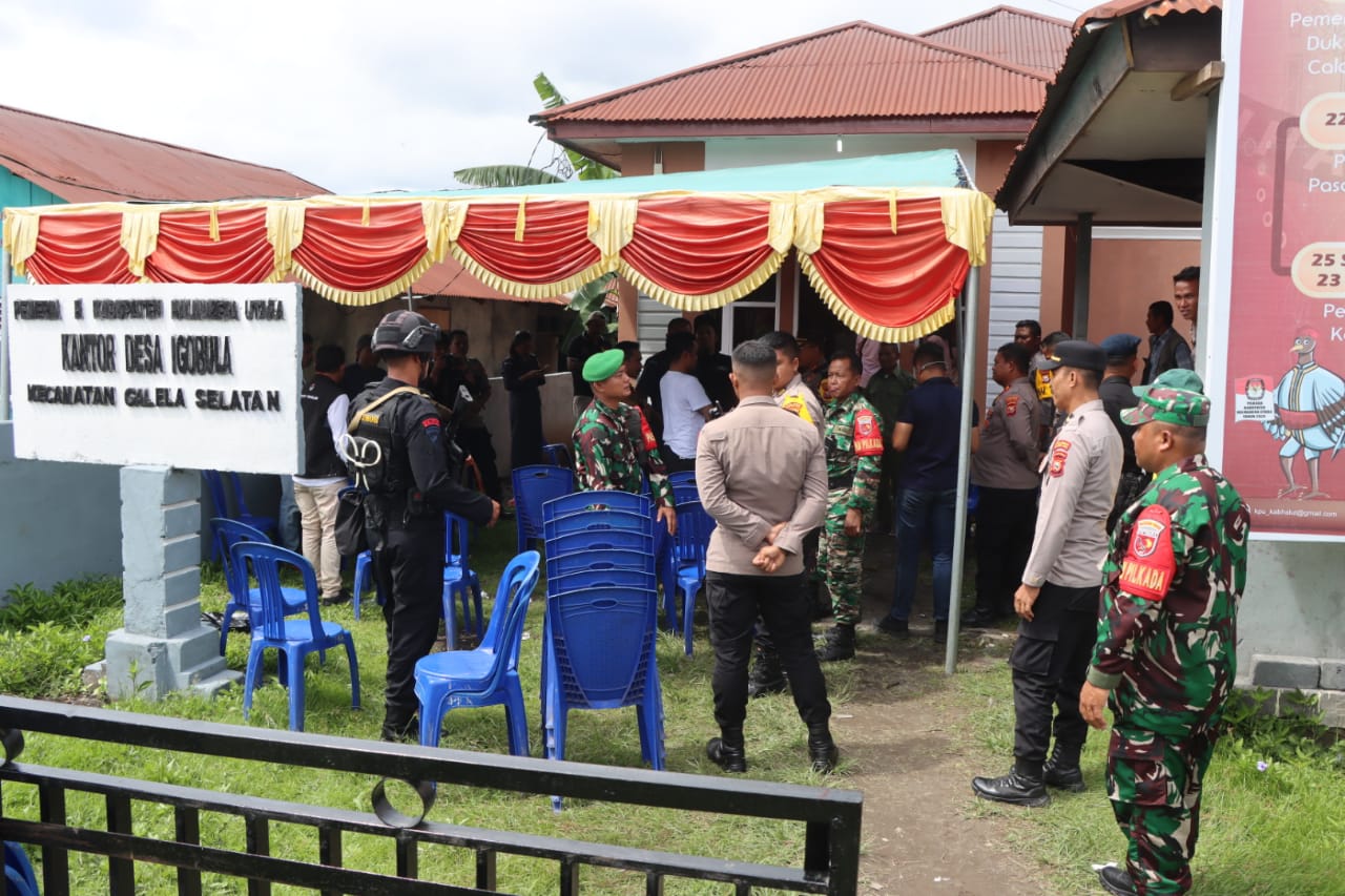 TOBELO, HR – Dandim 1508/Tobelo, Letkol Inf Alex Donald Maritua Lumban Gaol, S.E., M.M., bersama Kapolres Halmahera Utara, AKBP Faidil Zikri, S.H., S.I.K., turun langsung memantau pelaksanaan Pemungutan Suara Ulang (PSU) Pilkada Gubernur/Wakil Gubernur serta Bupati/Wakil Bupati Halmahera Utara di Desa Igobula, Kecamatan Galela Selatan, Kabupaten Halmahera Utara. Selasa (03/12/2024).