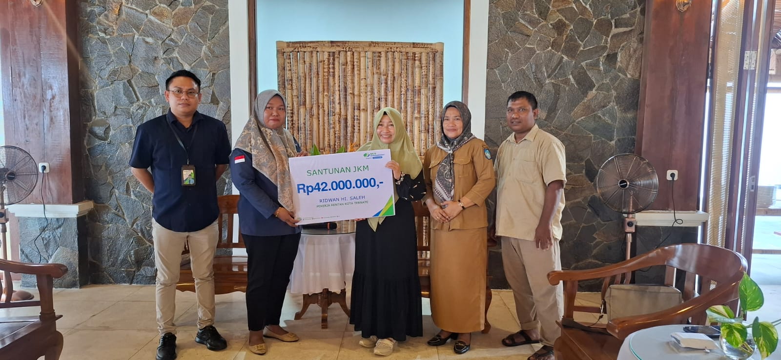Sekadar diketahui setelah dilakukan sosialisasi, BPJS Ketenagakerjaan menyerahkan santunan Jaminan Kematian (JKM) kepada ahli waris Istri dari almarhum Ridwan Hi Saleh pekerja rentan Kota Ternate sebesar Rp42 juta.(nty)