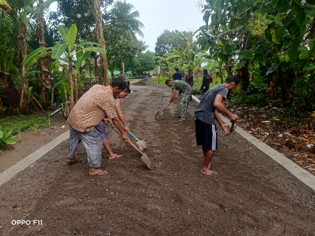 Pembangunan jalan Desa ini sudah lama ditunggu tungggu oleh warga di TMMD yang bisa tercapai keinginan warga tersebut sehingga antusias masyarakat pun bergotong royong membantu Satgas TMMD menimbun dan meratakan Pasir yang diturunkan Dari Dam Truck.