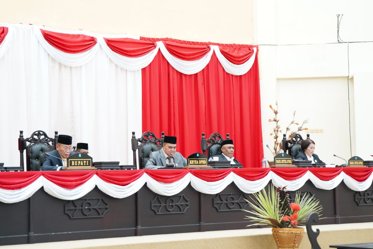 TOBELO, HR — Pertanggungjawaban anggaran daerah yang dilaksanakan Pemda Halmahera Utara pada tahun 2023, akhirnya diterima oleh DPRD Kabupaten Halmahera Utara dengan mengesahkan Perda Pertanggungjawaban Pelaksanaan APBD Tahun 2023, Rabu (24/07/2024) sore. Pengesahan Perda itu dilakukan dalam rapat paripurna DPRD kabupaten Halmahera Utara yang dipimpin langsung Ketua DPRD Halmahera Utara, Janlis Gihanua Kiong, SAp.
