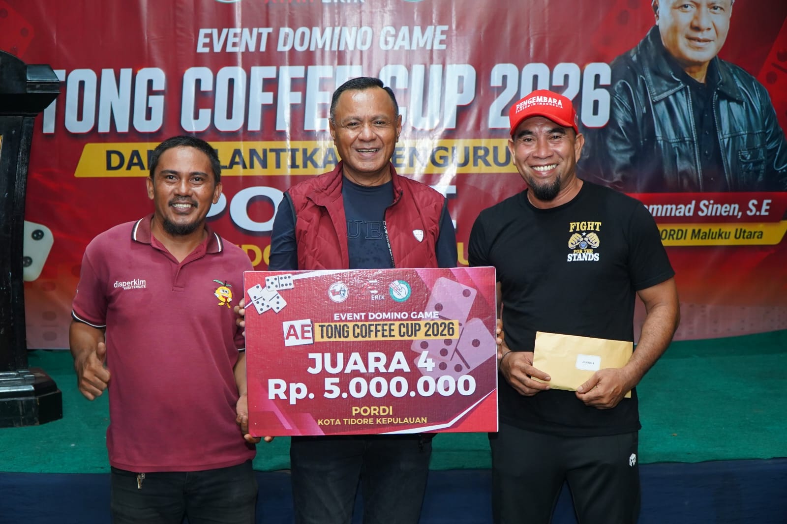 Adapun pemenang pertandingan AE Tong Coffee Cup Tahun 2026 diantaranya, kategori umum juara 1 diraih oleh pasangan Ukan – Ris dari Gardu Tong Coffee, juara 2 diraih oleh pasangan Habu – Gani dari Gardu Balibunga, juara 3 diraih oleh pasangan Bilo – Mas dari Gardu Balibunga, sementara kategori eksekutif juara 1 diraih oleh pasangan Unu – Nim dari Gardu Balibunga dan juara 2 diraih oleh Ayah – Palu dari Gardu Pordi Malut. Para Pemenang masing-masing mendapatkan hadiah berupa uang tunai.(***)