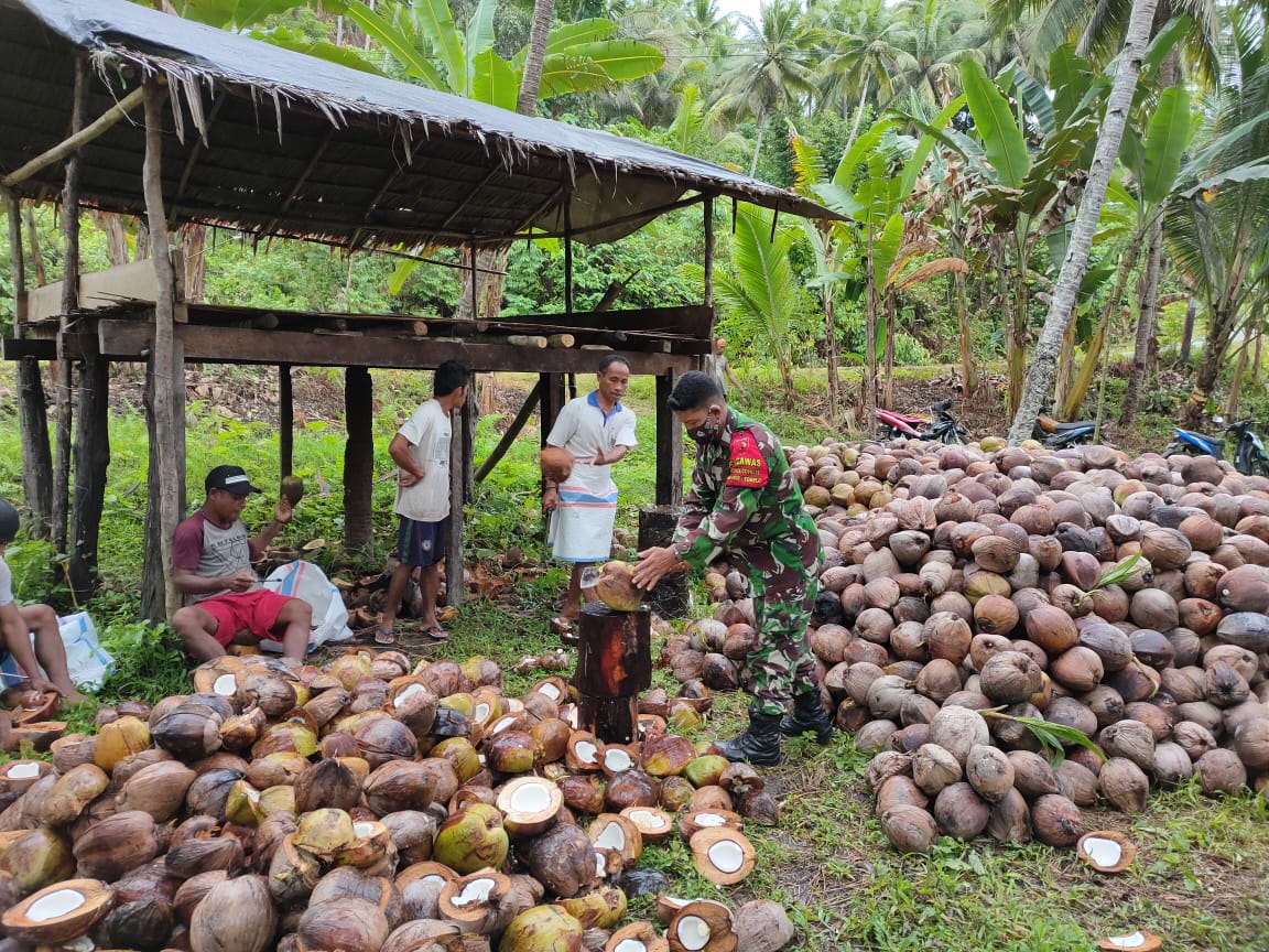 Sementara Nas Zamrud menyampaikan terima kasih kepada Babinsa yang sudah mau berkunjung dan turut membantu dalam proses pembuatan kopra di tempat miliknya.