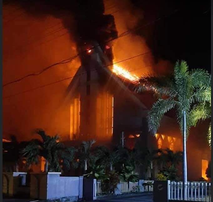 TOBELO, HR—-Gereja Imanuel Gamsungi Kecamatan Tobelo, Kabupaten Halmahera Utara (Halut), terbakar. Kebakaran terjadi sekira pukul 23.15 Wit. Kamis (18/02/2021). Tidak ada korban jiwa dalam peristiwa tersebut.