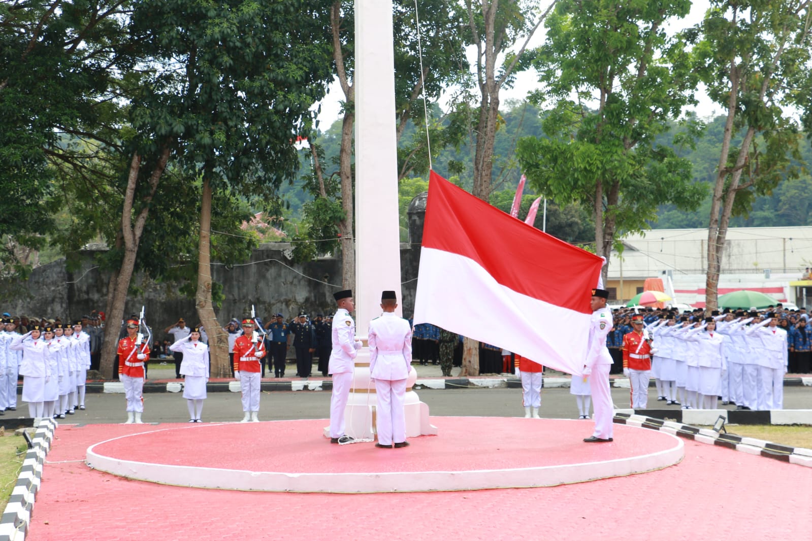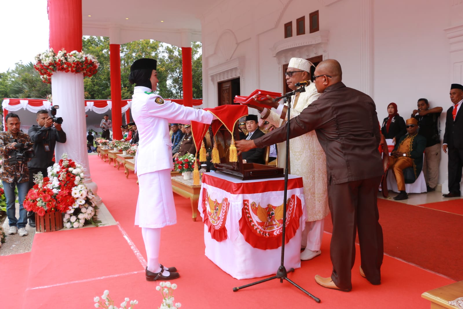 – Sertu Wahyudin sebagai Danpas pengibaran utusan Kodim 1510 Sula, Bripda M. Darwin Djalil sebagai Danpas Penurunan utusan dari Polres Kepulauan Sula.