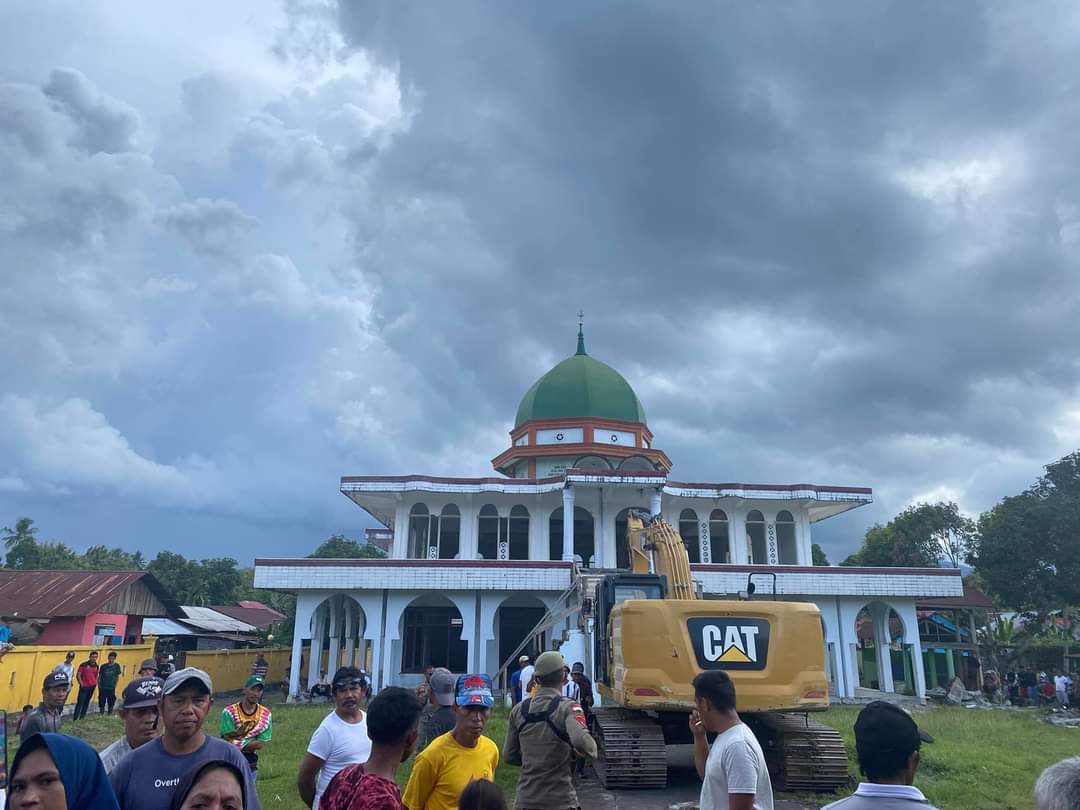TOBELO, HR— Wakil Bupati kabupaten Halmahera Utara menghadiri pembongkaran Masjid Nur Muhammad di Desa Ngidiho kecamatan Galela Barat kabupaten Halmahera Utara, Senin (06/06/2022).