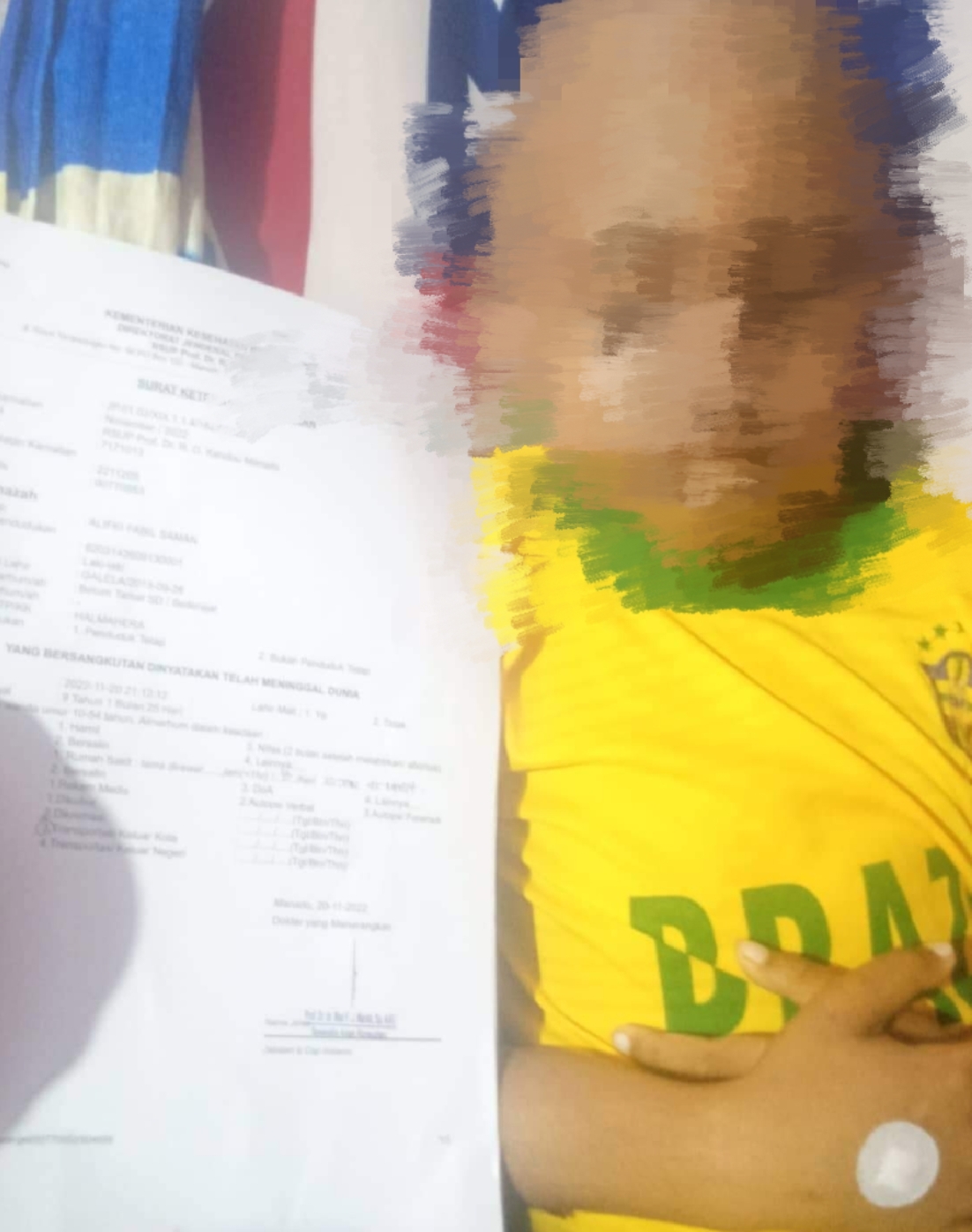 ” Anak saya Alifki Fabil Saman kurang lebih 3 bulan dirawat di RS Malalayang Manado, sebagai Ibu saya sangat khawatir dan sedih dengan kondisinya hingga meninggal dunia,” tutur Fani Yangu sambil menangis. senin (21/11/2022).