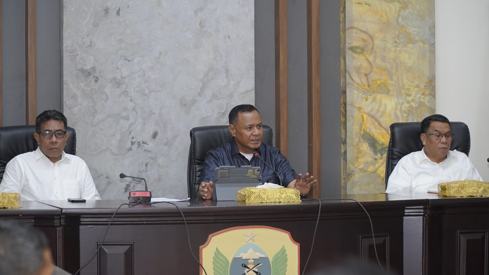 TIDORE, HR – Wali Kota Tidore Kepulauan Muhammad Sinen dan Wakil Wali Kota Ahmad Laiman rapat bersama para pimpinan Organisasi Perangkat Daerah (OPD) di Lingkup Pemerintah Kota Tidore di hari pertama berkantor, rapat tersebut guna membahas beberapa hal yang berkaitan dengan program seratus hari kerja, rapat tersebut berlangsung di Ruang Rapat Wali Kota, Rabu (5/3/2025).