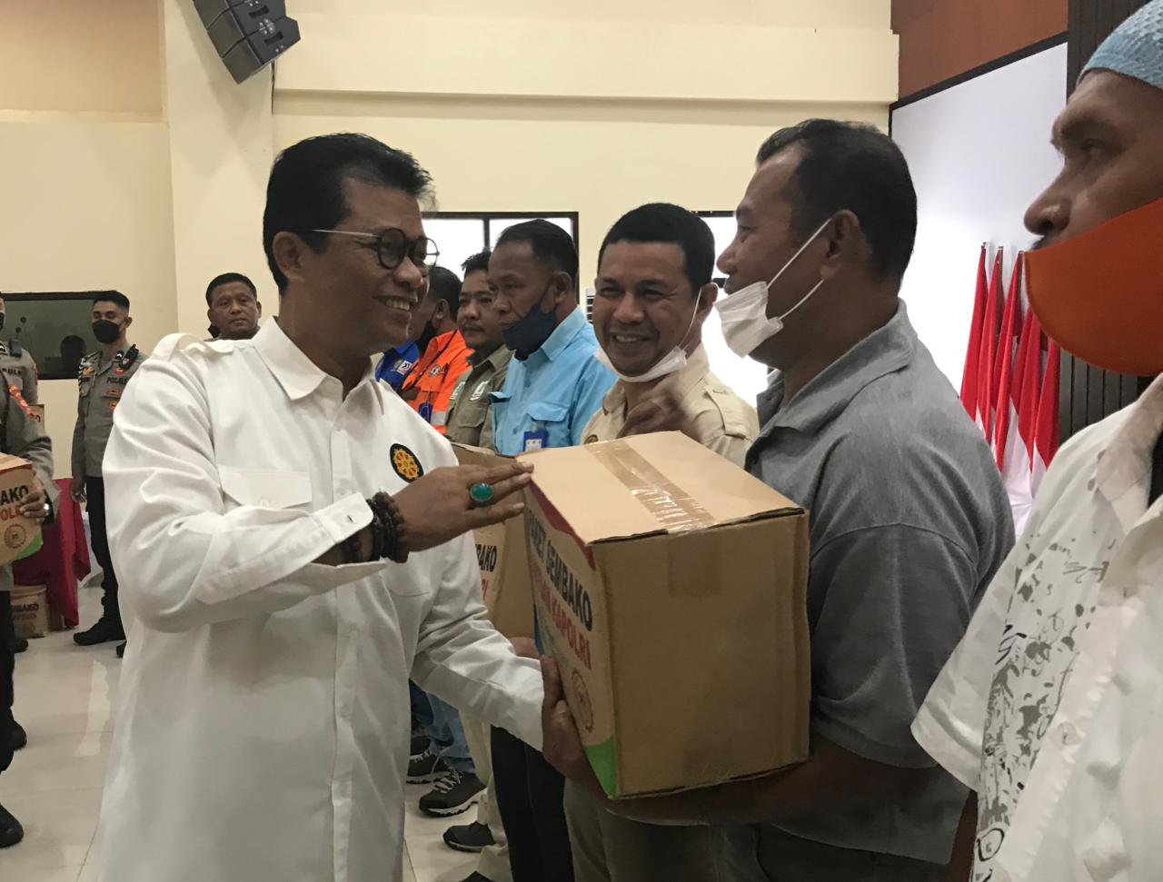 TERNATE,HR—Dalam rangka hari bhayangkara ke -76, Kapolda Maluku Utara (Malut), Irjen Pol Risyapudin Nursin melakukan penyerahan 1.000 bantuan sembako dari kapolri ke buruh terdampak pendemi covid-19.