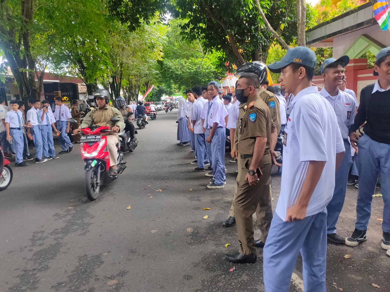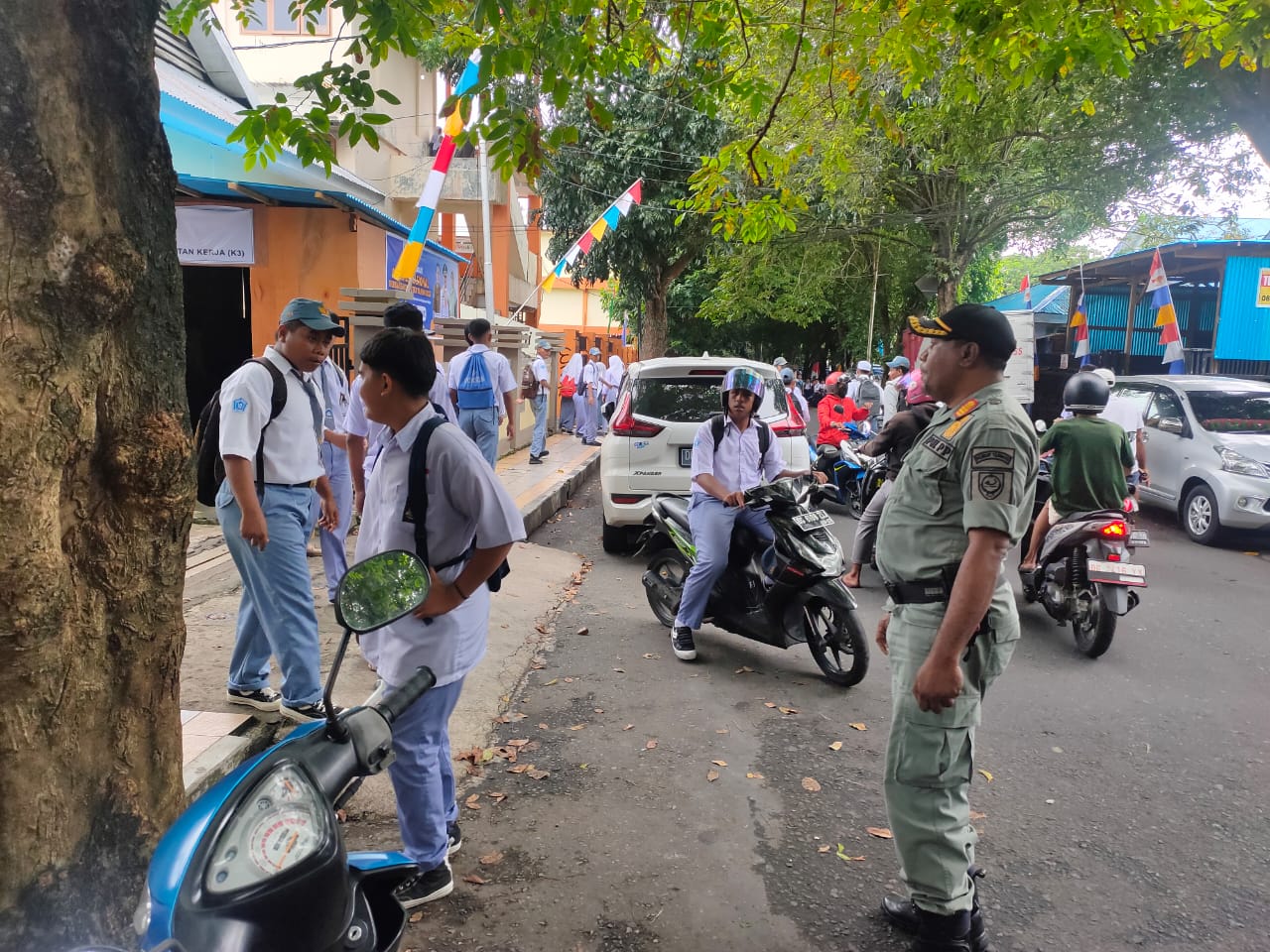 TERNATE, HR – Satuan Polisi Pamong Praja (Satpol PP) melakukan pengawasan ke anak sekolah, Senin (29/8). Pengawasan tersebut lantaran tersebarnya WhatsApp Grup rencana tawuran antar sekolah di Kota Ternate.