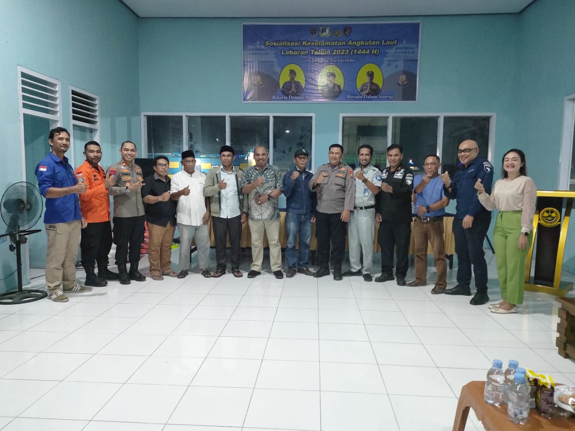 TOBELO, HR— Menjelang masa angkutan Lebaran 2023 dan arus mudik, Kantor Unit Penyelenggara Pelabuhan (UPP) kelas I Tobelo, Halmahera Utara, Maluku Utara menggelar Sosialisasi Keselamatan Angkutan Laut kepada para agen pelayaran, pemilik kapal dan nakhoda di terminal Nia Ino Holio, Selasa (11/04/2023).