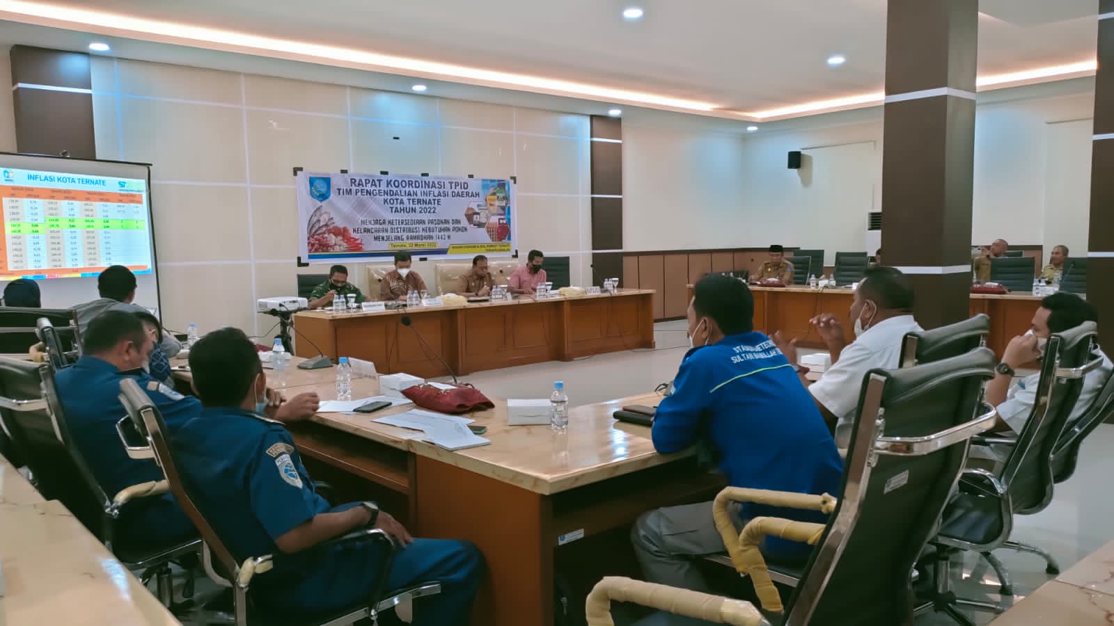 TERNATE,HR—Pemerintah Kota Ternate melakukan rapat koordinasi Tim Pengendalian Inflasi Daerah (TPID) Kota Ternate yang dipimpin langsung Ketua TPID Kota Ternate, Jusuf Sunya, Selasa (21/3/2022) di Lantai III Kantor Wali Kota Ternate. Rapat tersebut untuk menjaga ketersediaan pasokan dan kelancaraan ditribusi kebutuhan pokok menjelang ramadhan 1443 Hijriyah.
