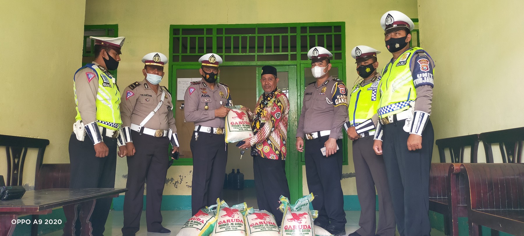 TOBELO, HR—– Satuan Lalulintas Polres Halmahera Utara (Halut) membagikan bantuan beras untuk Pondok Pesantren. Kegiatan ini dipimpin langsung oleh Kasat Lantas Polres Halut, Iptu Adil S.AP bersama anggota Satlantas Polres Halut mengunjungi Pondok pesantren Al Khairat Tobelo, Jumat (03/12/2021).