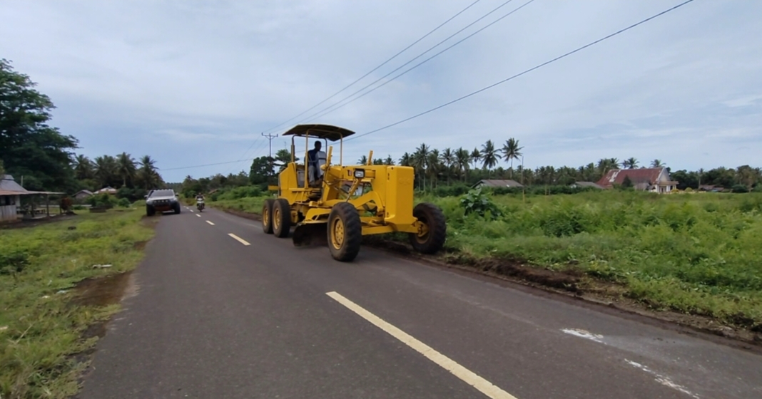 Bahkan harus menggunakan alat berat untuk membersihkan jalan yang telah tertimbun tanah dan rumput ilalang di badan jalan menuju desa Wangongira.