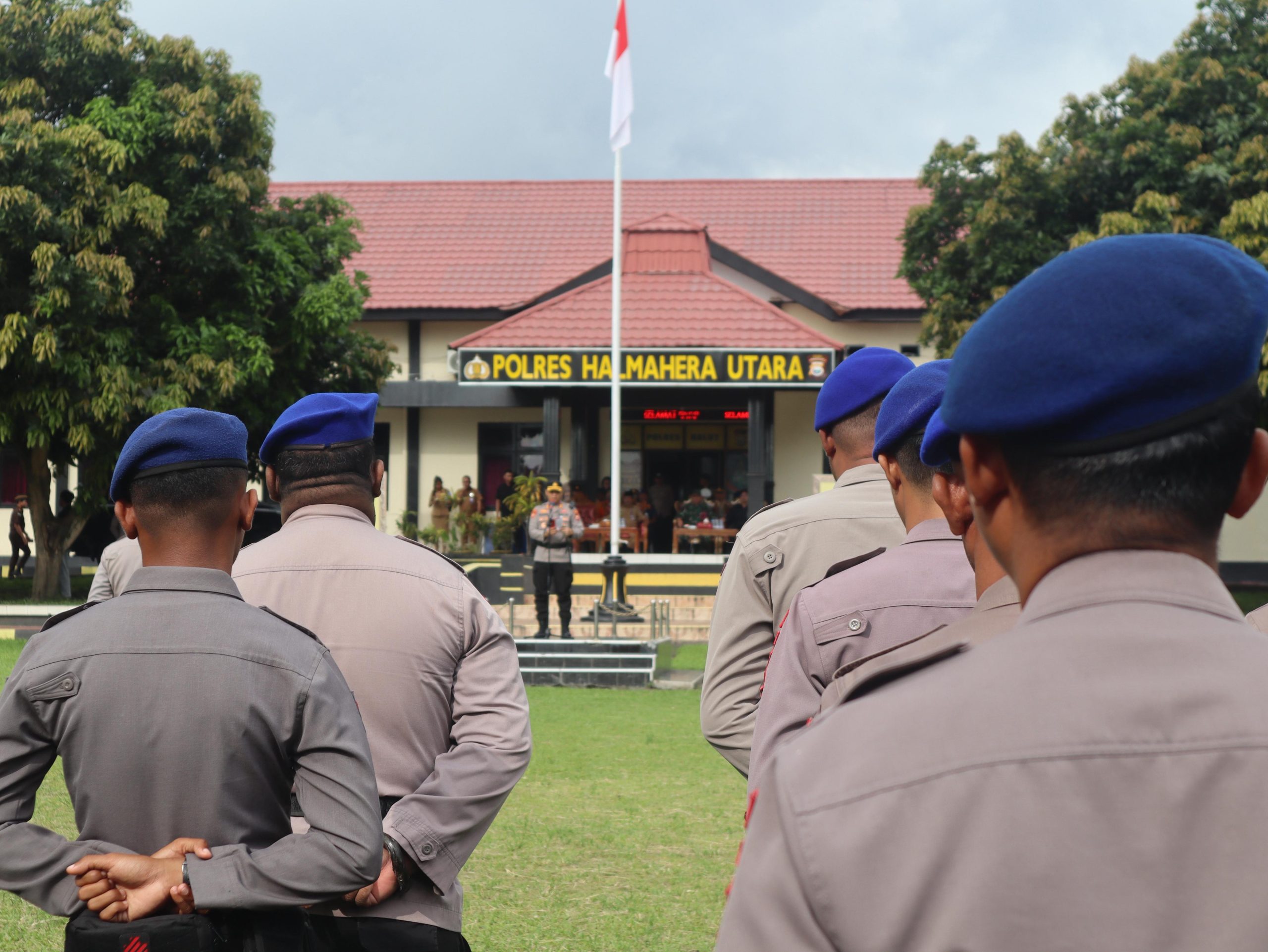 Kegiatan tersebut dipimpin langsung oleh Kapolres Halmahera Utara AKBP Erlichson Pasaribu S.H. S.I.K. selaku pimpinan apel, sedangkan AKP Yulianus Balangan, S.H. sebagai perwira apel dan Ipda Dwi Agus Sunarto, S.H sebagai komandan apel.