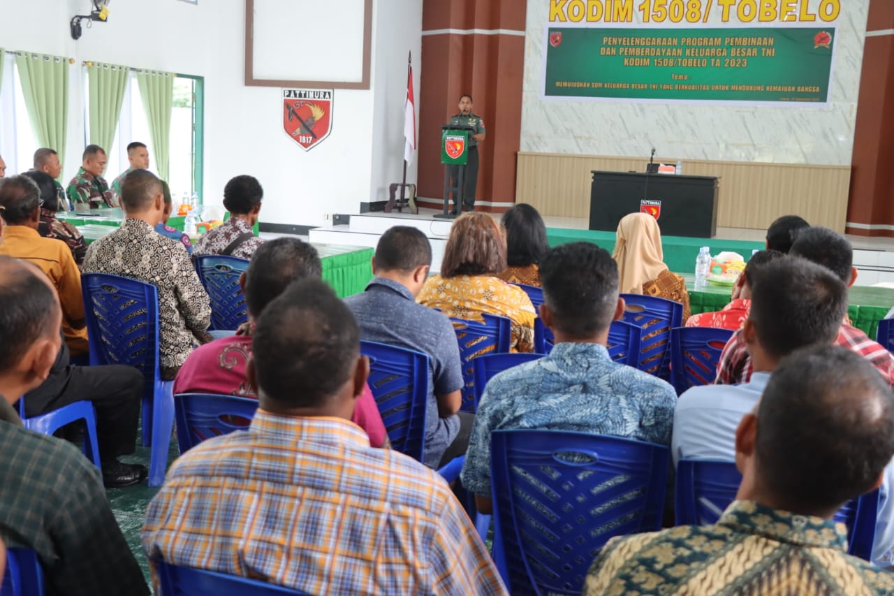 TOBELO, HR — Kodim 1508/Tobelo menggelar Kegiatan Pembinaan dan pemberdayaan Keluarga Besar TNI (KBT) TA. 2023, bertempat di aula Makodim 1508/Tbl Jalan Kawasan Pemerintahan Desa MKCM Kecamatan Tobelo Kabupaten Halmahera Utara, Rabu (27/9/2023).