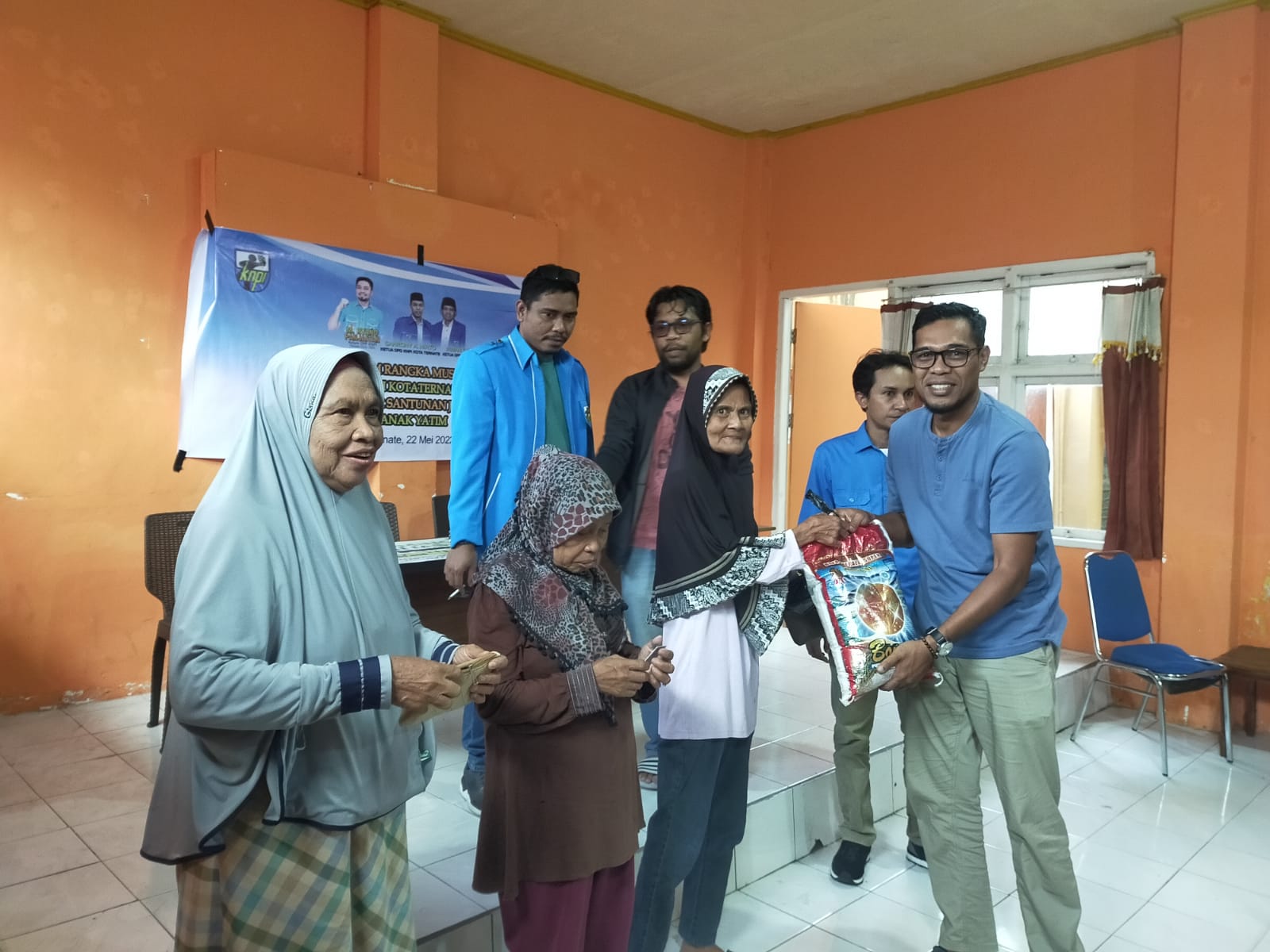 TERNATE, HR—Komite Nasional Pemuda Indonesia (KNPI) Kota Ternate, memberikan santunan paket sembilan bahan pokok (Sembako) ke janda dan anak yatim di Ternate, dalam rangka Musyawarah Daerah (Musda) ke-VI KNPI Kota Ternate.