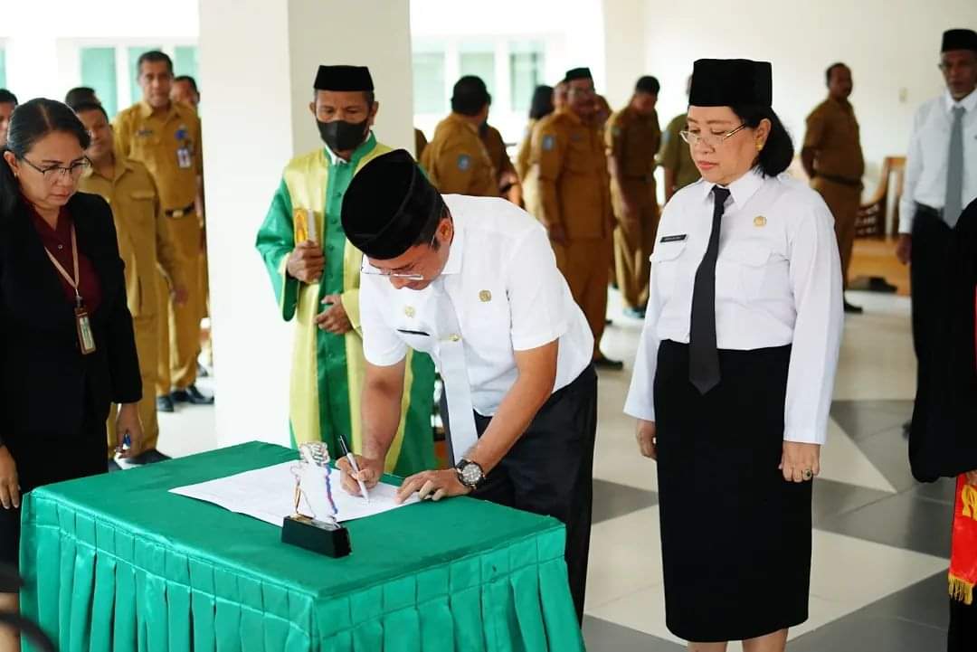 Pelantikan yang berlangsung sejak pukul 10:00 WIT dilaksanakan di Pandopo lantai II Kantor Bupati, dihadiri Sekretaris Daerah Erasmus Jhosep Papilaya dan seluruh pimpinan Organisasi Perangkat Daerah (OPD) lingkup Pemkab Halut.
