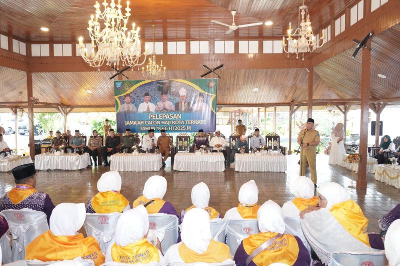 TERNATE, HR – Sebanyak 265 calon jamaah haji (CJH) Kota Ternate dilepas oleh Wali Kota Ternate, M. Tauhid Soleman, di Pendopo Kedaton Kesultanan Ternate, Senin (5/5/2025).