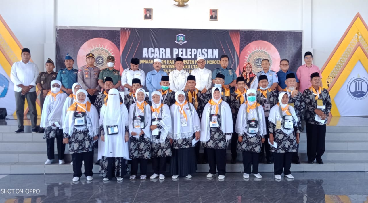 MOROTAI,HR—Pejabat (Pj) Bupati Kabupaten Pulau Morotai, Muhammad Umar Ali, Rabu (22/06/2022), menghadiri dan melepaskan 22 Orang Jamaah Calon Haji (JCH) 1443 Hijriyah tahun 2022 asal Pulau Morotai. Ke 22 JCH asal Morotai itu, dilepas dan diberangkatkan menuju Kota Ternate menggunakan pesawat Wings Air.