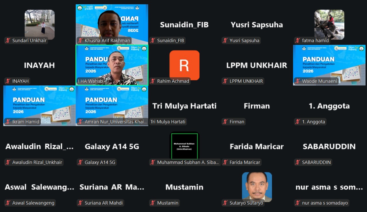 Hibah dari Kementerian Pendidikan Tinggi, Sains, dan Teknologi (Kemdiktisaintek) serta penelitian kompetitif unggulan perguruan tinggi (PKUPT) Unkhair tahun 2026 itu disosialisasikan secara daring melalui Zoom Cloud Meeting.