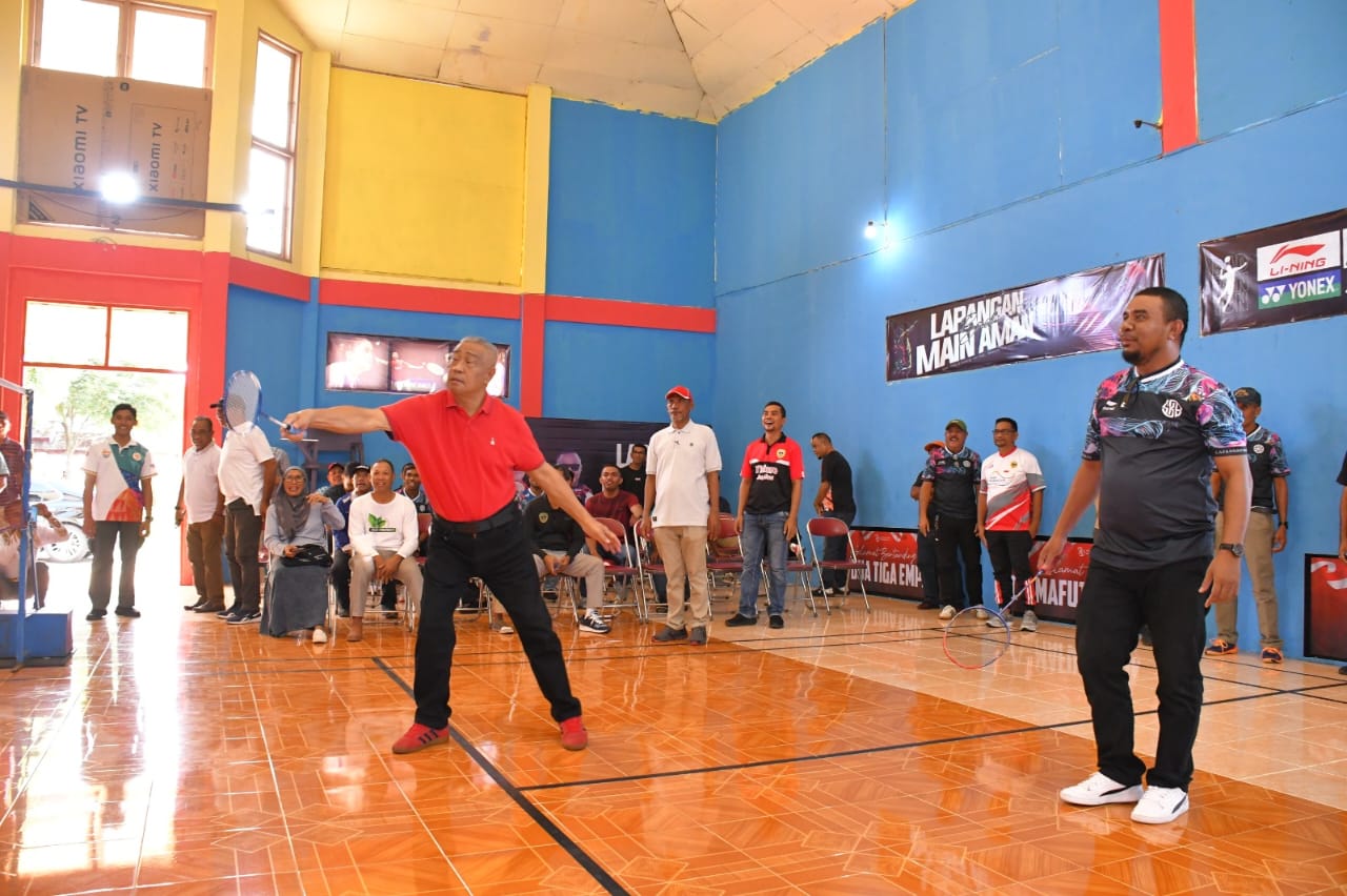 Sementara, Ketua Panitia Ibrahim Marsaoly dalam laporannya menyampaikan, turnamen badminton Main Aman ini dilaksanakan selama selama 3 hari, mulai Tanggal 9 sampai dengan 11 Agustus 2024. Adapun peserta yang akan bertanding dalam Turnamen ini sebanyak 51 tim, terdiri dari 35 pasangan putra dan 16 pasangan putri yang merupakan perwakilan dari OPD di Lingkup Pemerintah Kota Tidore Kepulauan.