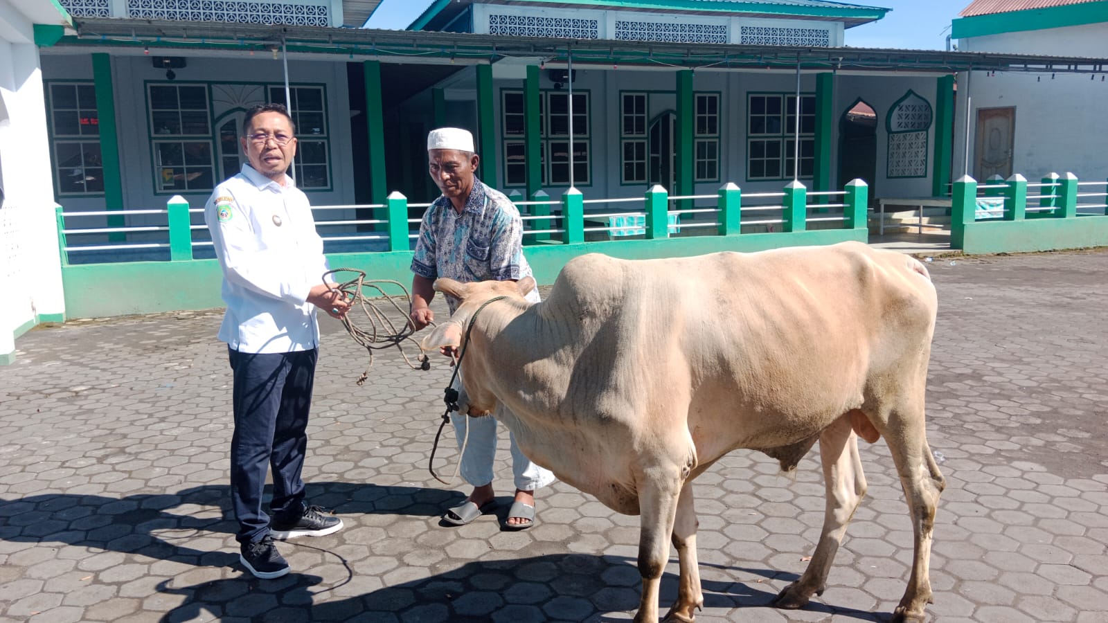 $TOBELO,HR—- Ketua Dewan Pimpinan Daerah (DPD) Partai Nasional Demokrat (NasDem) kabupaten Halmahera Utara, Muchlis Tapi Tapi yang juga sebagai Wakil bupati Halmahera Utara, menyerahkan 1 ekor sapi kepada pengurus Masjid Jami Kampong Cina Tobelo untuk kurban, Rabu (06/07/2022).