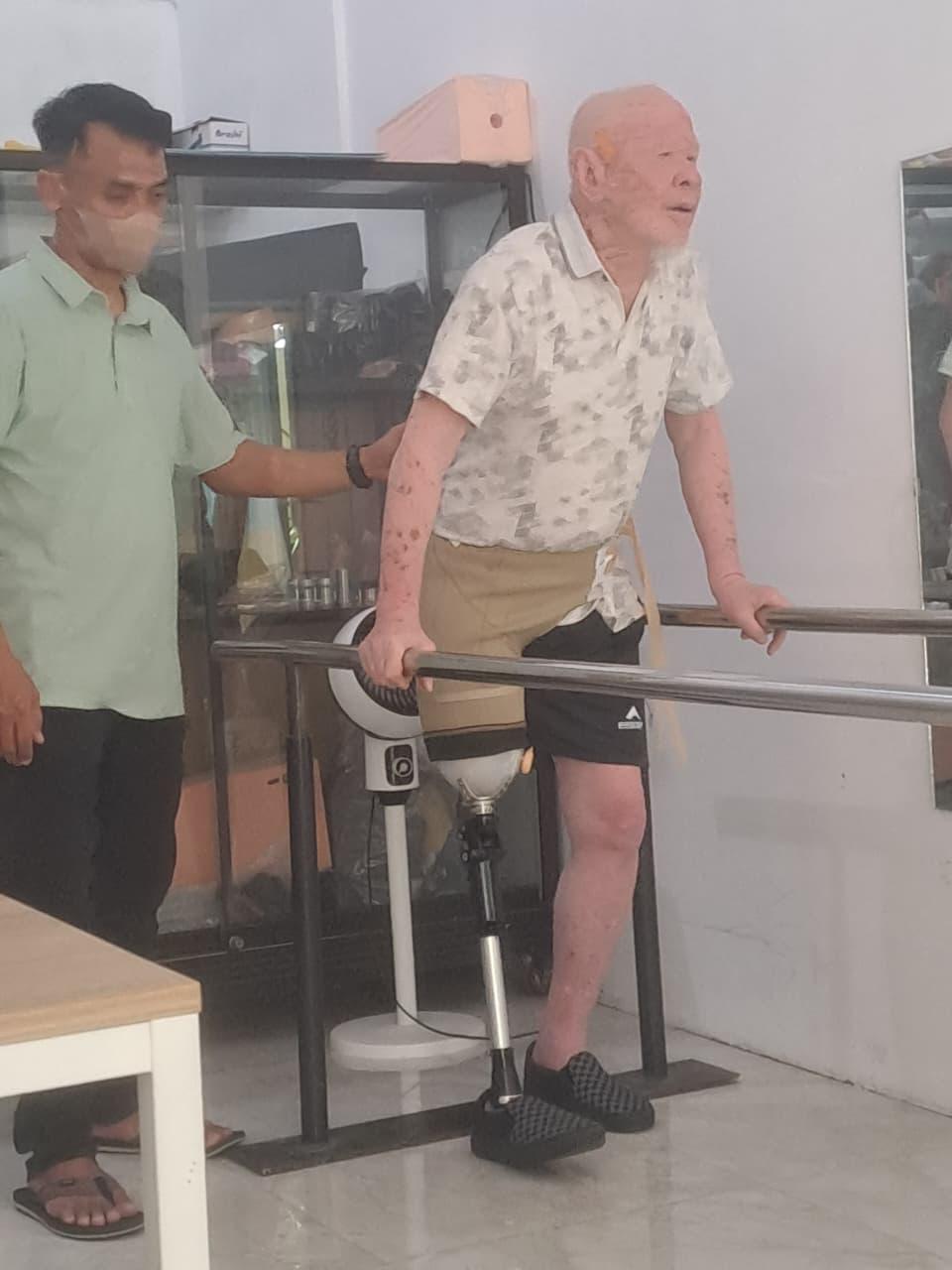 Proses penyerahan dimulai pada 2 September 2025, dan pemasangan serta pelatihan penggunaan kaki palsu selesai pada 27 Oktober 2025. Bantuan diserahkan langsung oleh dokter pendamping NHM Peduli, dr. Hi. Syamsul Bahri dengan pendampingan dari Indra Ismail (tim NHM Peduli). Bahan kaki palsu tersebut dikirim dari Jakarta, dengan proses finishing dan pelatihan pemakaian dilakukan di Klinik Orthotik Prostetik Manado.