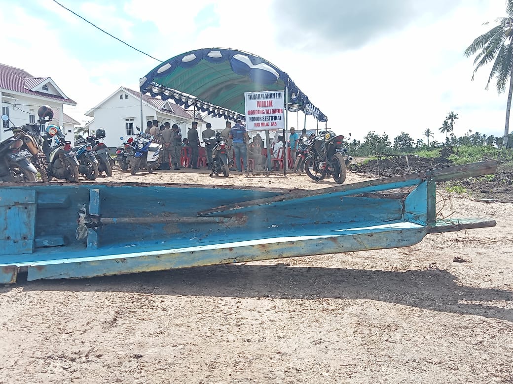 MOROTAI,HR—Tanah milik Mondeng dan Suaminya Ali Gafur di kompleks American Vellage kilo Tiga Desa Daruba Kecamatan Morotai Selatan (Morsel) yang sebelumnya di palang karena diduga diserobot Pemda Pulau Morotai itu akhirnya bisa diselesaikan.