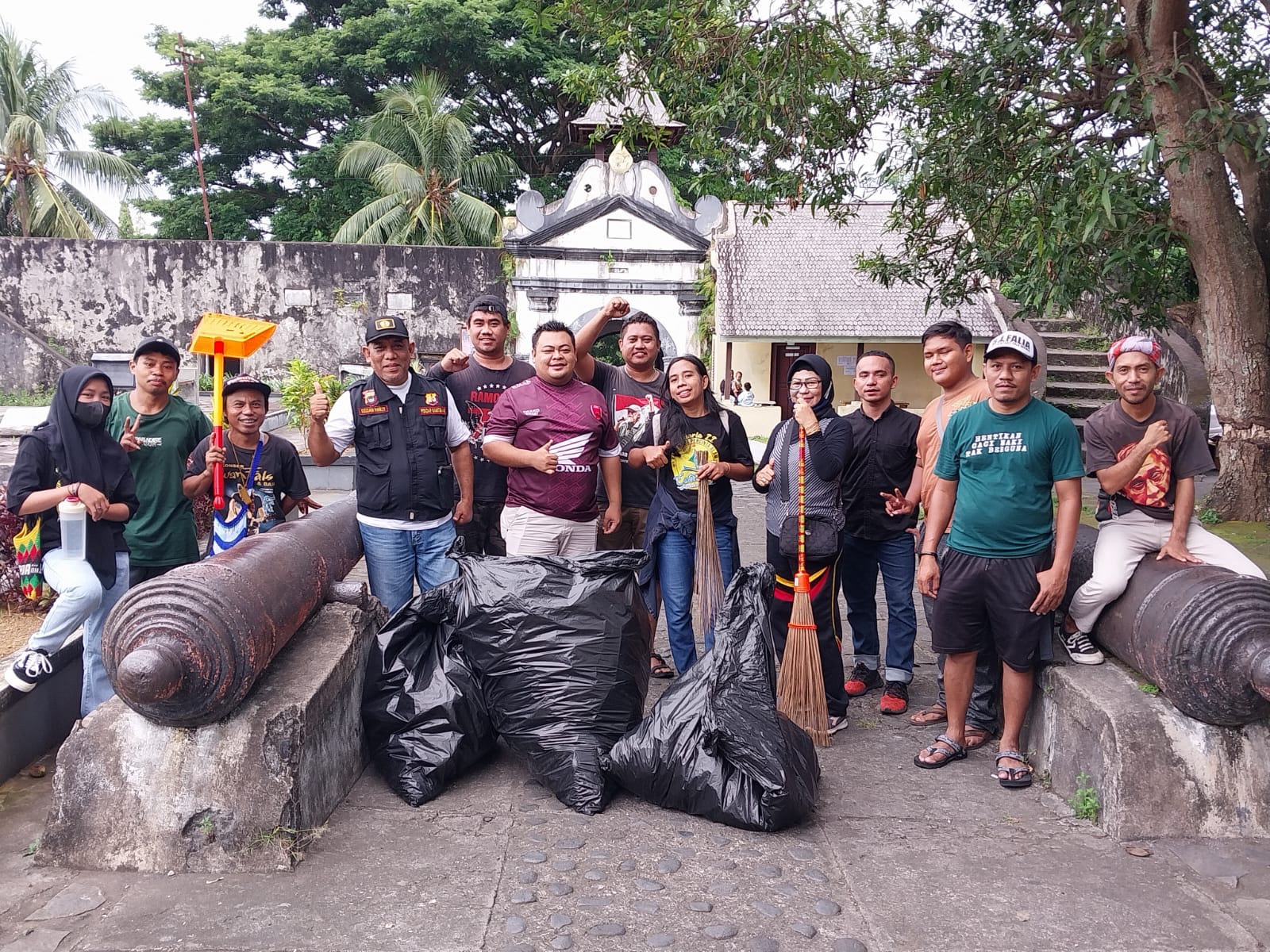 Puluhan orang ini kemudian memulai melakukan aksi pungut sampah dari depan kantor Dinas Kebudayaan Ternate hingga sejumlah titik di dalam Benteng Oranje.