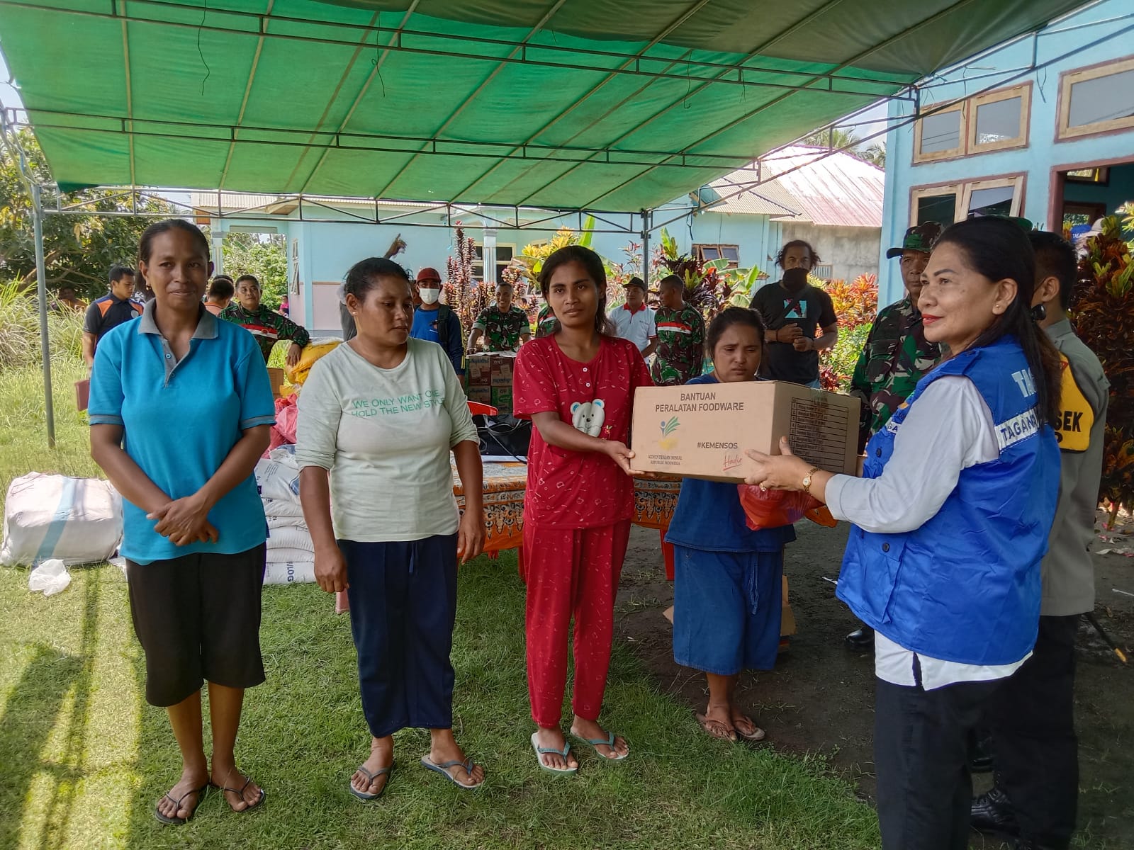 Penyerahan bantuan tersebut dihadiri Dandim 1508/Tobelo Letkol Inf I Putu Witharsana dan Kapolsek Kao Ipda Muhammad Faisal.