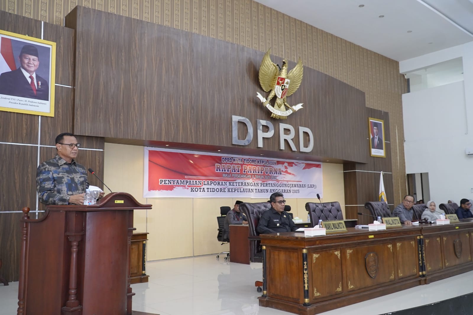 Rapat paripurna diakhiri dengan penyerahan laporan pertanggungjawaban Pemerintah Daerah Kota Tidore Tahun 2025 oleh Wali Kota Tidore kepada Ketua DPRD Kota Tidore.