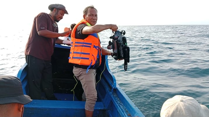 Ketua Tim Unkhair, Dr. M. Ridha Ajam, M.Hum, menjelaskan bahwa drone bawah air digunakan untuk membaca kondisi dasar laut yang tak memungkinkan dijangkau penyelaman manual.