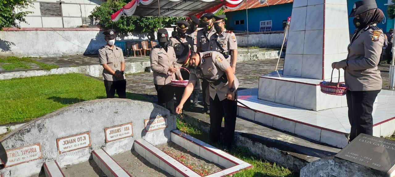 Peringati HUT Bhayangkara ke-75, Polres Halut Ziarah Ke Makam Pahlawan Yasin Gamsungi