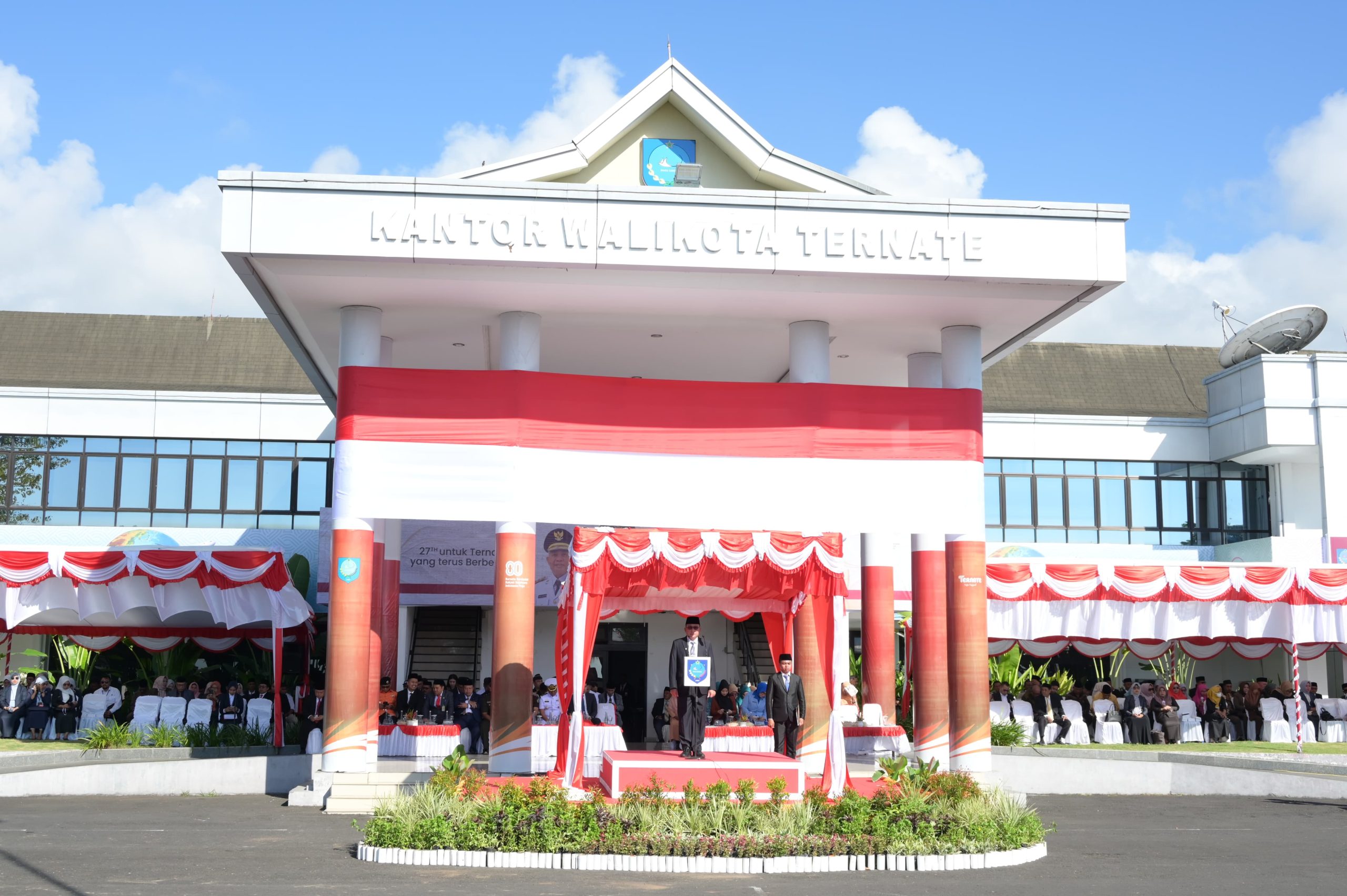 TERNATE, HR – Upacara Hari Ulang Tahun (HUT) ke-27 Kota Ternate dipimpin langsung oleh Wali Kota Ternate M Tauhid Soleman, Senin (27/4/2026) di Halaman Kantor Wali Kota.