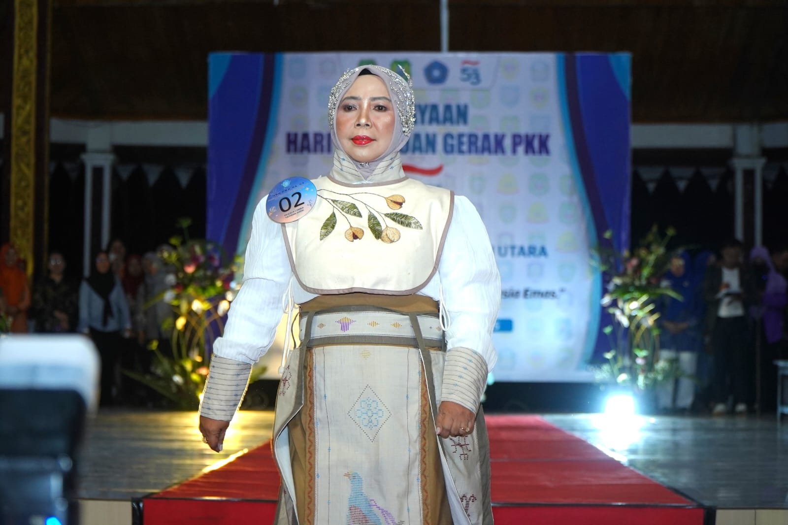 “Seperti salah satu busana yang saya kenakan dalam lomba fashion show HKG PKK ke 53 Tahun 2025, busana tersebut dirancang khusus oleh Ibu Anita Gathmir bertema Borero Gosimo atau Pesan Leluhur yang tertuang dalam setiap motif dan detail busananya,” tuturnya.