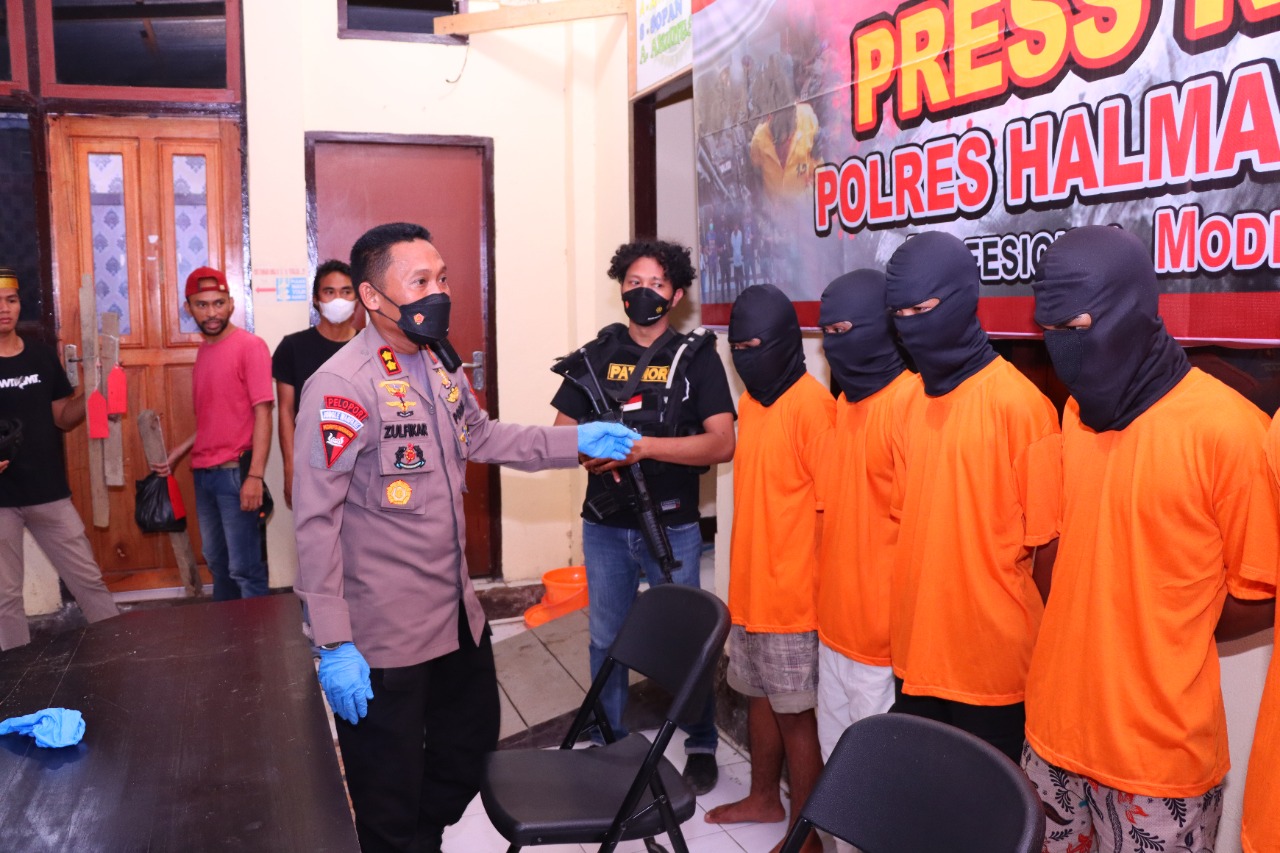 “Polisi telah berhasil melakukan penangkapan terhadap pelaku pengeroyokan yang diduga dilakukan oleh LS dan kawan kawan tepatnya di samping semen di Desa Lelilef Woebulan Weda Tengah dan setelah diidentifikasi dari 16 diduga pelaku, 11 orang ditetapkan sebagai tersangka,”ungkap Kapolres AKBP Zulfikar Iskandar, saat Prees Relise di Polres Halteng, Selasa (19/04/2022).