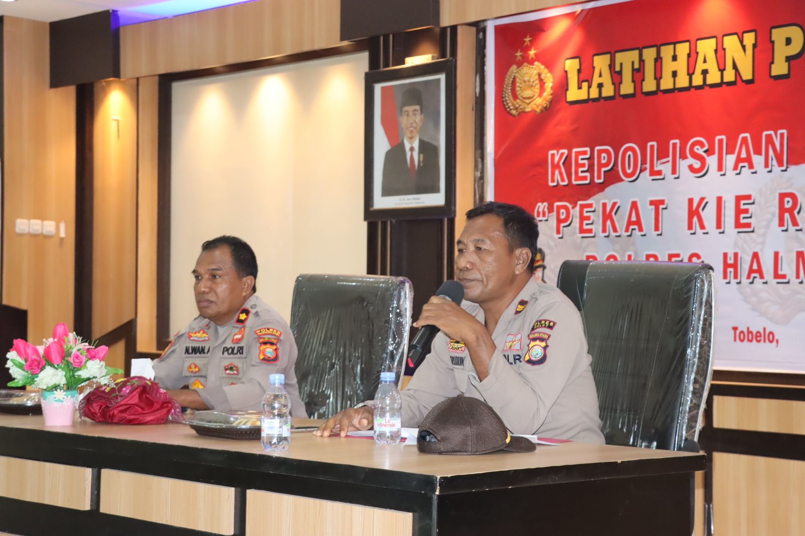 Setelah pelaksanaan pembukaan Lat Pra Ops Pekat Kie Raha II — 2022, kegiatan dilanjutkan dengan pemberian materi oleh perwira penanggung jawab operasi yang telah di tunjuk yaitu Kabag Ops yang di wakili Kasubag Bin Ops Iptu Amirudin Abubakar memberikan materi tentang Sosialisasi Ren Ops Pekat Kie Raha II – 2022, Kasat Narkoba AKP Mansur Basing, SH memberikan materi tentang penegakan Hukum Penyakit Masyarakat, Kasat Intelkam Iptu Muhammad Nur Abdul Latif Al Waro’i STK, SiK memberikan materi tentang Kirka deteksi dan penggalangan, Kasat Binmas Iptu Nimrod Muman memberikan materi tentang tehnik penerangan dan pembinaan.