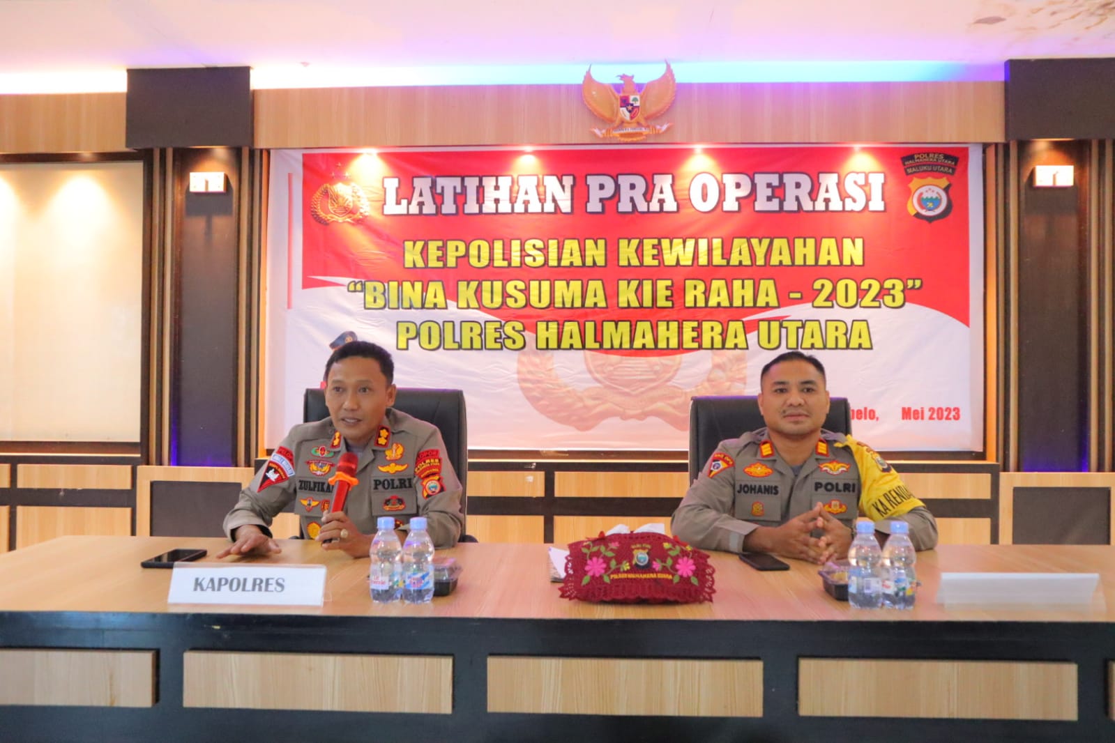 TOBELO, HR — Kepolisian Resor (Polres) Halmahera Utara melaksanakan Operasi Bina Kusuma Kie Raha 2023 yang berfokus kepada gangguan Kamtibmas khususnya, Premanisme, Kenakalan remaja, Balap liar, Penyalahgunaan narkoba, Pencegahan penyakit masyarakat serta gangguan kamtibmas lainnya yang sering terjadi di wilayah Kabupaten Halmahera Utara Utara.