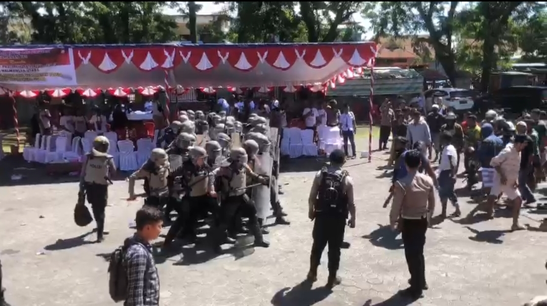 Kabag OPS Polres Halmahera Utara, AKP Jay Ananda Putra Sianipar, SIK. MH, diikuti oleh Personel Polres Halmahera Utara, Personel Kompi 1 Batalyon A Pelopor Kupa-kupa, dan Personel dari BKO Polda Maluku Utara.