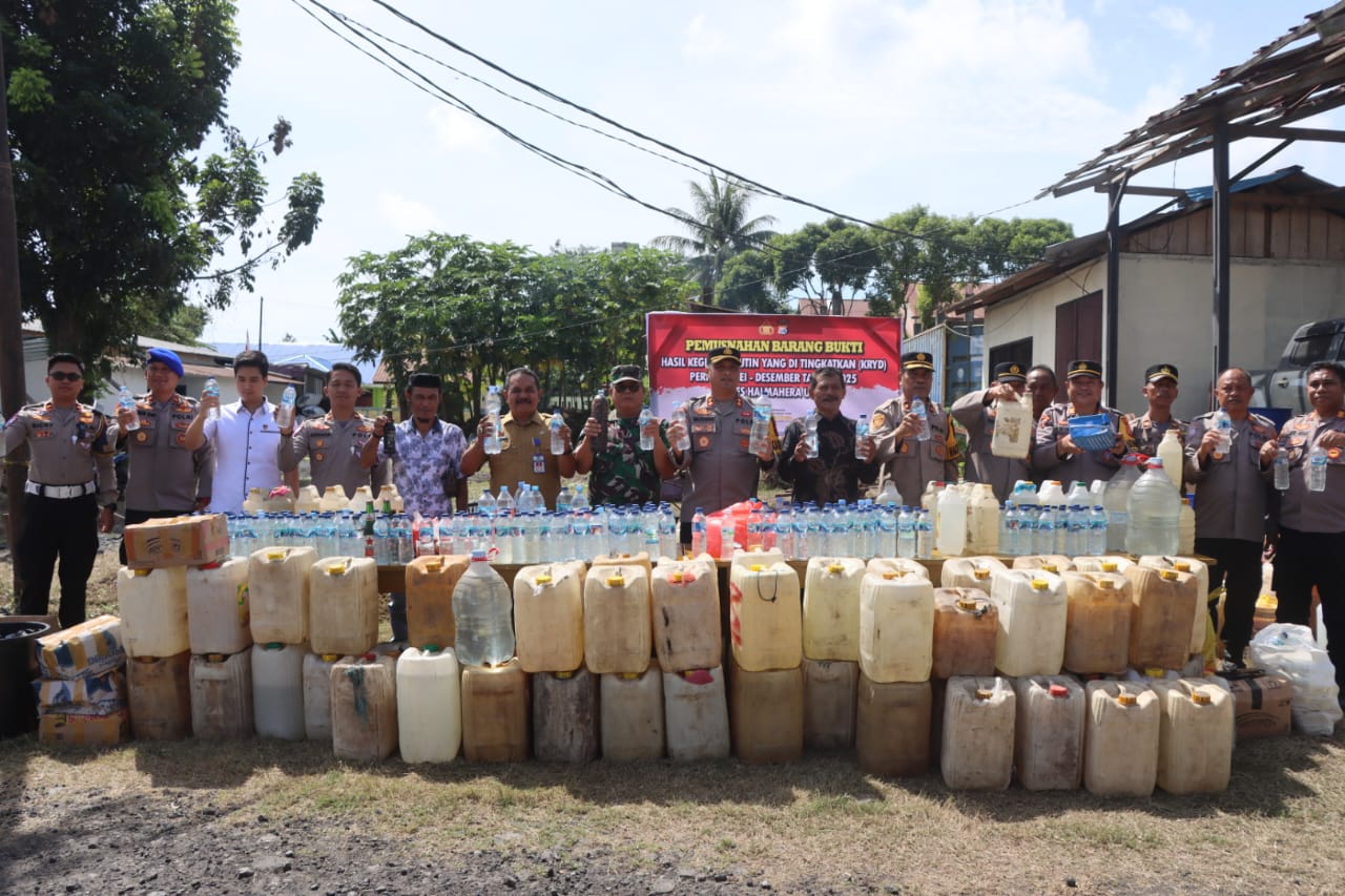 TOBELO, HR — Kepolisian Resor (Polres) Halmahera Utara, melakukan pemusnahan barang bukti hasil operasi yang digelar dalam rangka menjaga keamanan dan ketertiban masyarakat, bertempat di Halaman Mapolres Halmahera Utara, Selasa ( 30/12/2025 ).